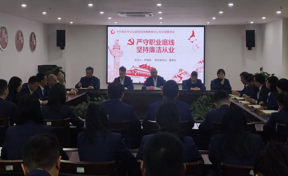 三是講黨課強(qiáng)黨性。市擔(dān)保公司黨支部書記、董事長(zhǎng)尹福健以“嚴(yán)守職業(yè)底線,堅(jiān)持廉潔從業(yè)”為題,圍繞“認(rèn)識(shí)新形勢(shì)反腐敗斗爭(zhēng)的形勢(shì)、腐敗出現(xiàn)的原因和防范措施、學(xué)習(xí)廉潔法律法規(guī),防范廉潔風(fēng)險(xiǎn)、增強(qiáng)黨員領(lǐng)導(dǎo)干部拒腐防變的能力”四個(gè)方面,結(jié)合公司實(shí)際為黨員干部上了一堂生動(dòng)的廉政黨課,警示黨員干部要增強(qiáng)“四個(gè)意識(shí)”,堅(jiān)定“四個(gè)自信”,做到“兩個(gè)維護(hù)”,強(qiáng)化黨性修養(yǎng),自覺增強(qiáng)“免疫力”。