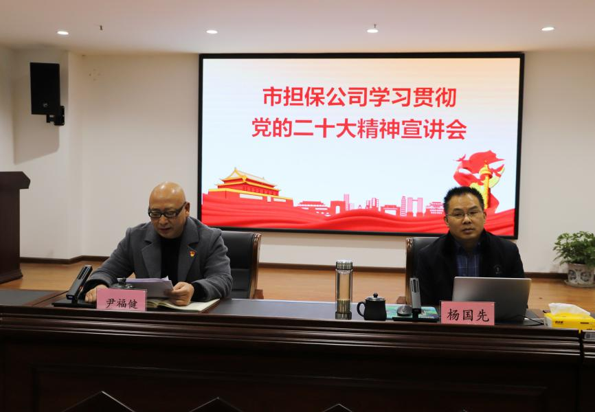 為深入學(xué)習(xí)貫徹黨的二十大精神,12月1日,市擔(dān)保公司邀請市委黨校副校長楊國先作黨的二十大精神專題宣講。市擔(dān)保公司黨支部書記、董事長尹福健主持會議。
